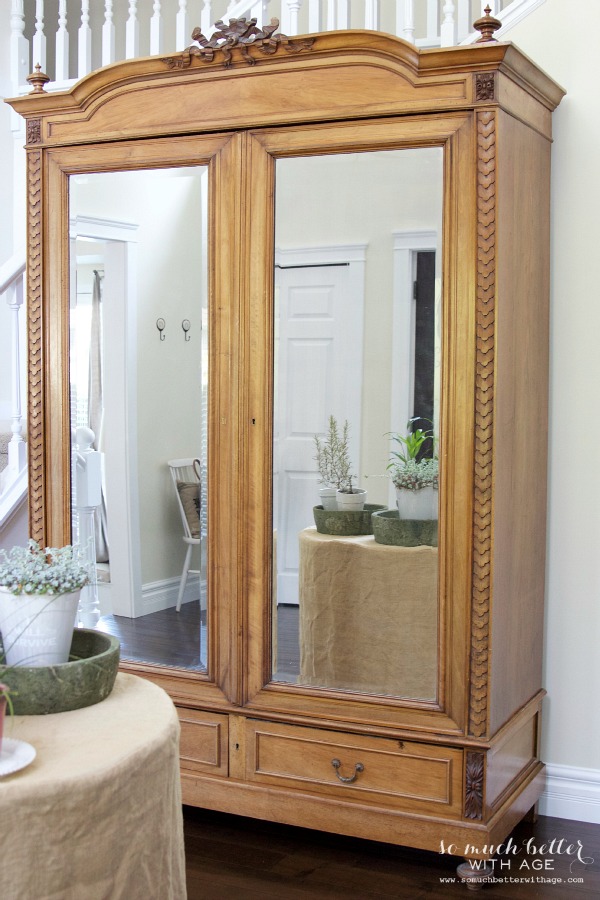 You might have noticed it on Instagram. It came in 10 pieces and at first I thought it was odd that an armoire/wardrobe was in pieces but apparently from my readers’ comments, that was normal for a wardrobe of that age and size.