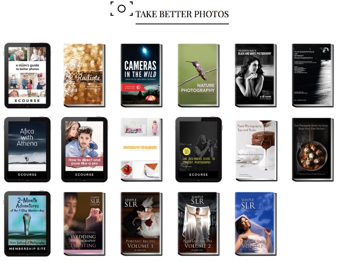 These top-quality resources cover all the topics that matter to the person who wants to preserve memories and capture the beauty around them… camera essentials, editing, family photography, inspiration, style, landscape, wedding photography, niche photography, and even earning money.